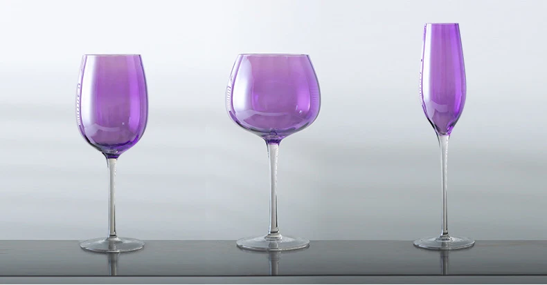 Home > Products > glass cup > Wholesale Wedding Decorative Wine Glass Champagne Goblet Water Purple Colored Wine Glasses With Custom Logo