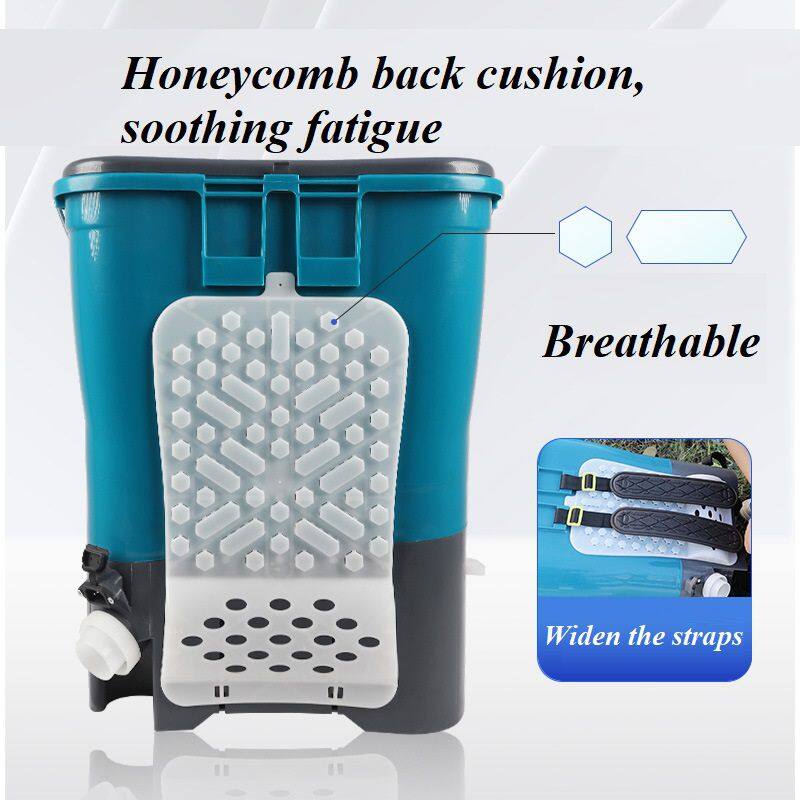 Features: Can fertilize 35 acres when fully charged. Back cushion with honeycomb structure, breathable and stress relieving. Adjustable handle.