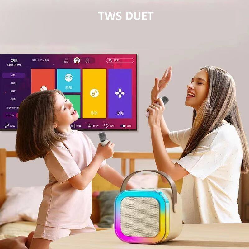 Hot Selling Mini Portable Karaoke Speaker With Wireless Microphone LED Light Karaoke Player K12