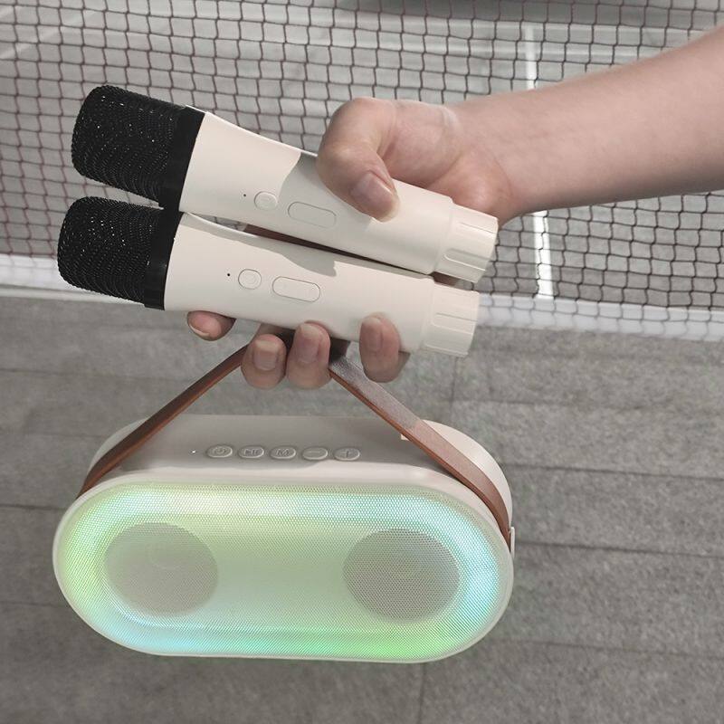 Mini Karaoke Speaker With Mic Bluetooth Speaker With Microphone Dual Mic Karaoke Set Home Speaker
