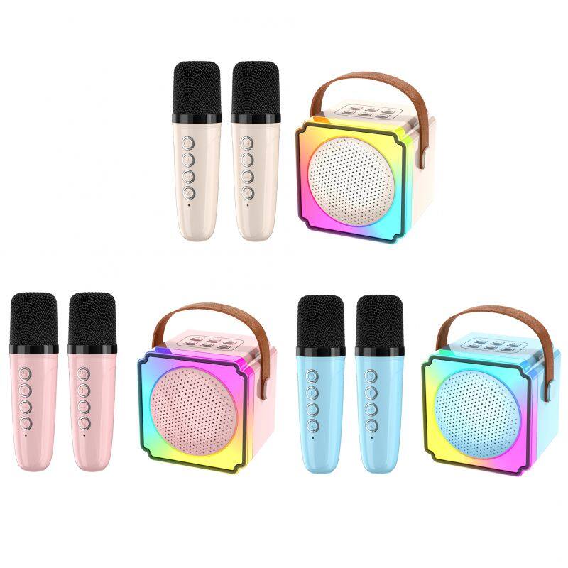 RGB Light Kids Karoke Speaker Tws Wireless Bluetooth Mini Bathroom Home Sound With Two Mic Kids