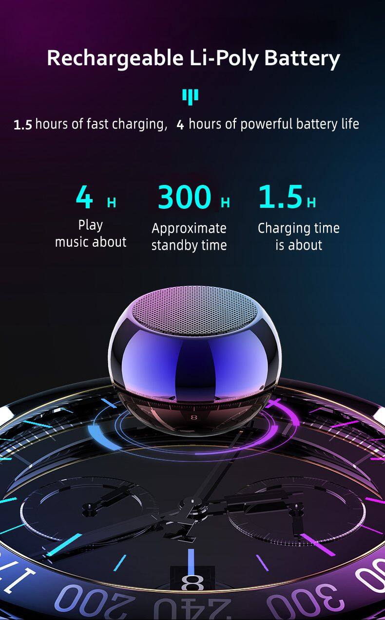 3 HR PLAY TIME FOR YOUR PLAYLISTS – Outfitted with a 300mAh battery, it features a durable aluminum shell and a magnetic base for convenient placement.