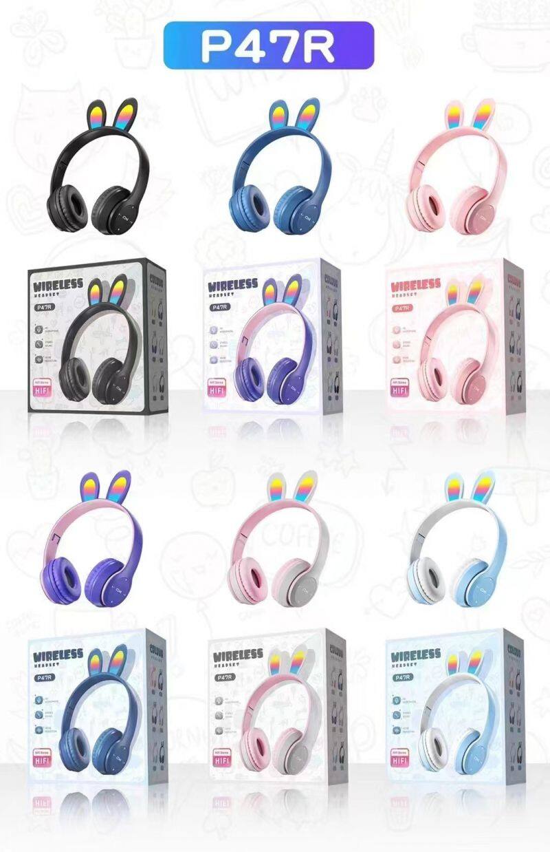 P47R Wireless Headphone Bluetooth Headset Noise Reduction RGB Light Game Music Headear Earphones For Children's Birthday Gift