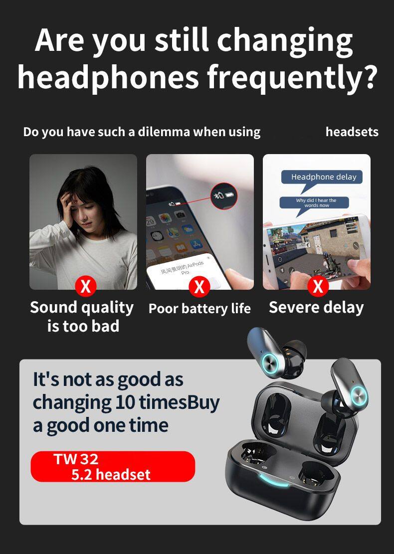 Wireless Anc Earphone For Gaming Low-latency Stereo Headphone Tws Bt 5.0 Enc Earphones Headset Earbuds