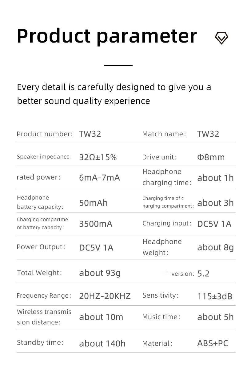 Earphone 400mah Stereo Anti-vibration Noise Caceling Ipx7 Waterproof With Hook Tws Earbuds