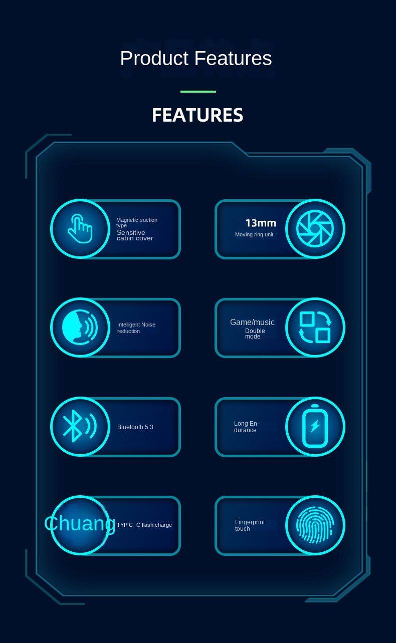 New Arrival Gaming Earphones Tws Headphones Gaming Headset Bt 5.3 Tws Blue Tooth Earphone
