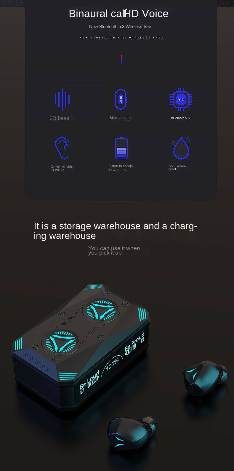 New Mecha Wind V5.3 Tws Earphones 9d Hifi Stereo TWS Earbuds Sweat and Waterproof Gaming Earphones Tws