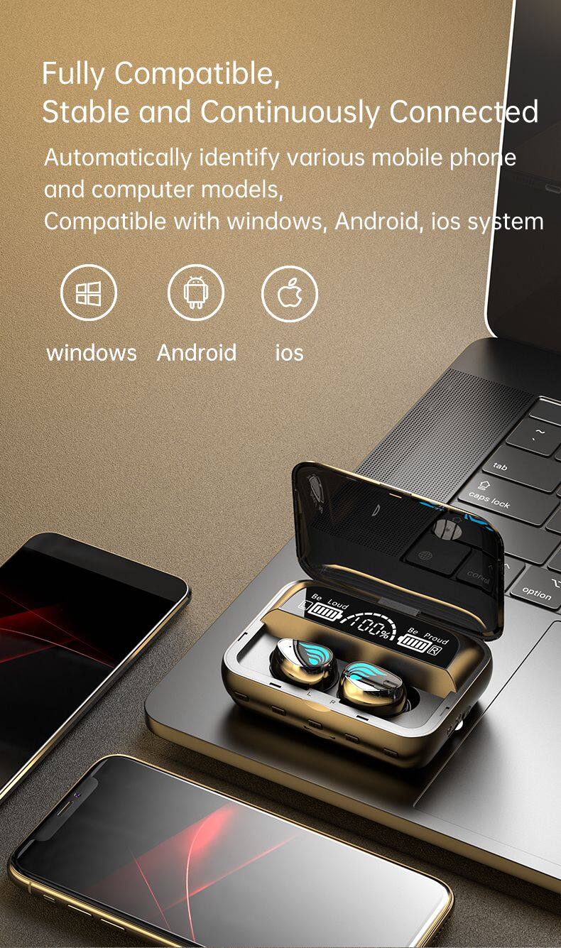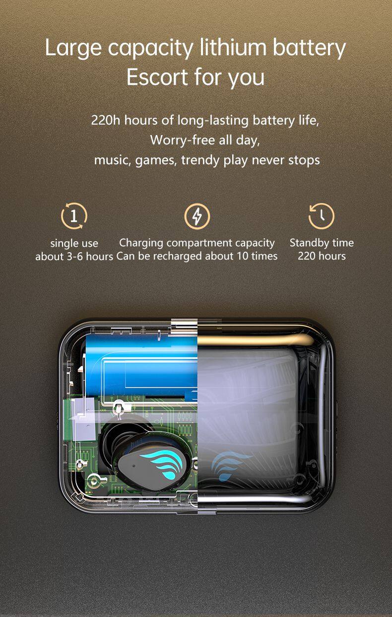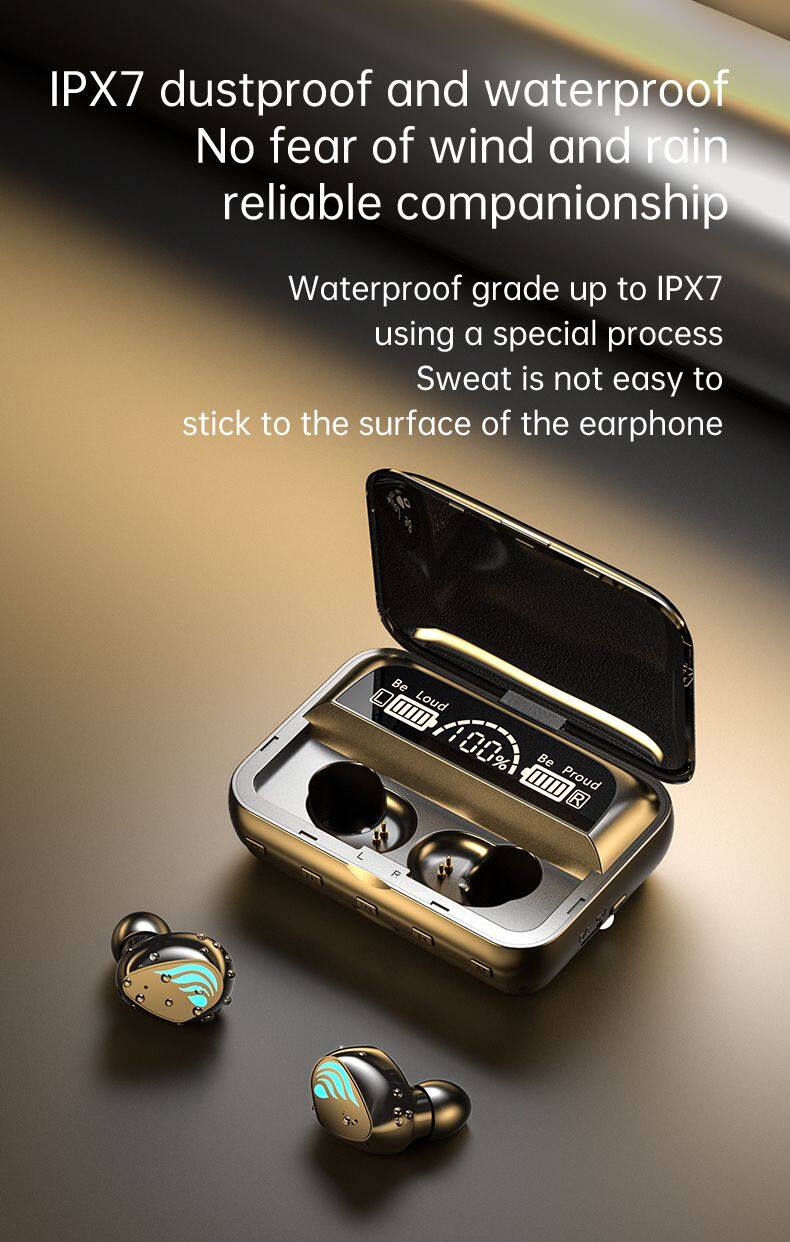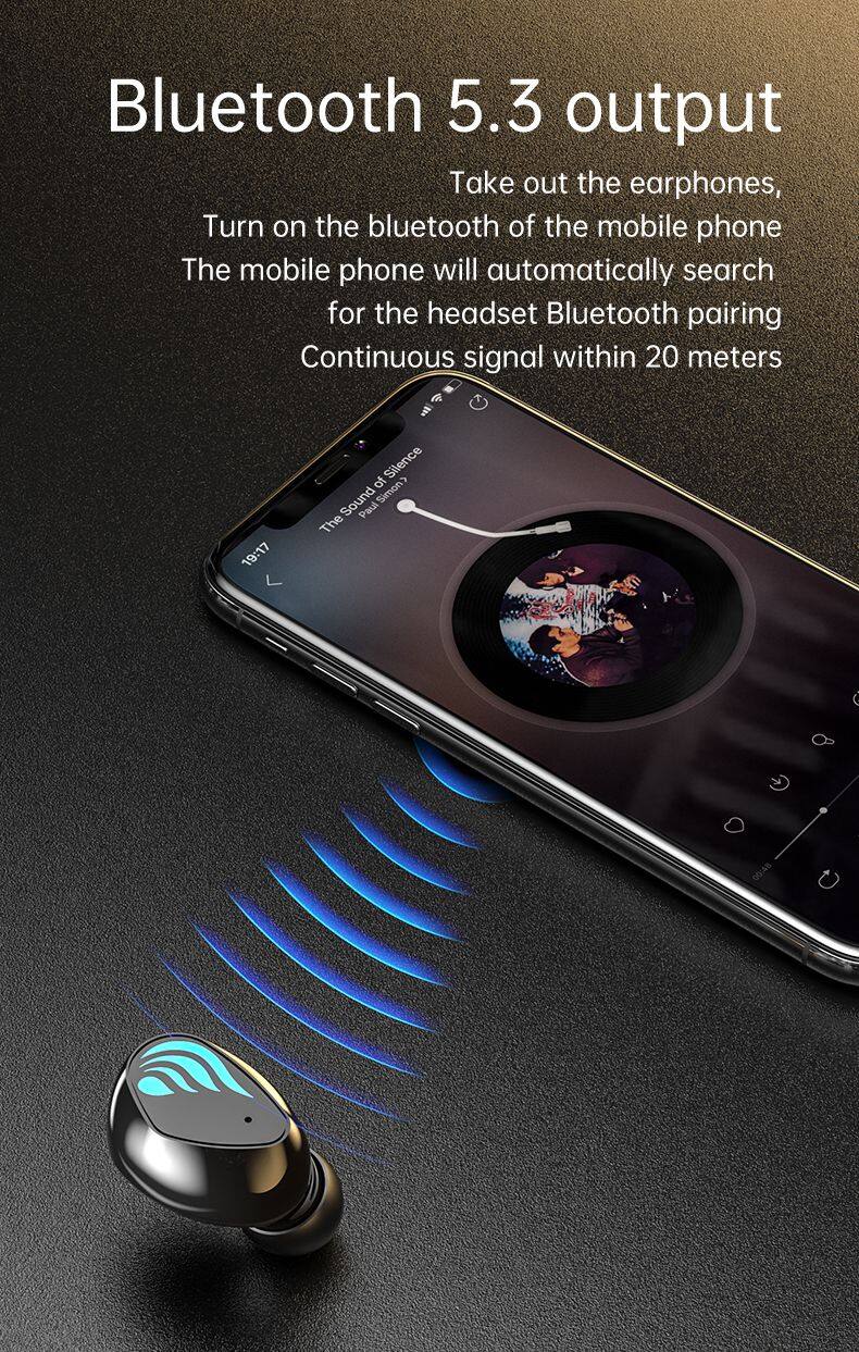 Earphone Mini Waterproof True Wireless Stereo LED Digital Display Earbuds In-ear With Power Bank Earphone