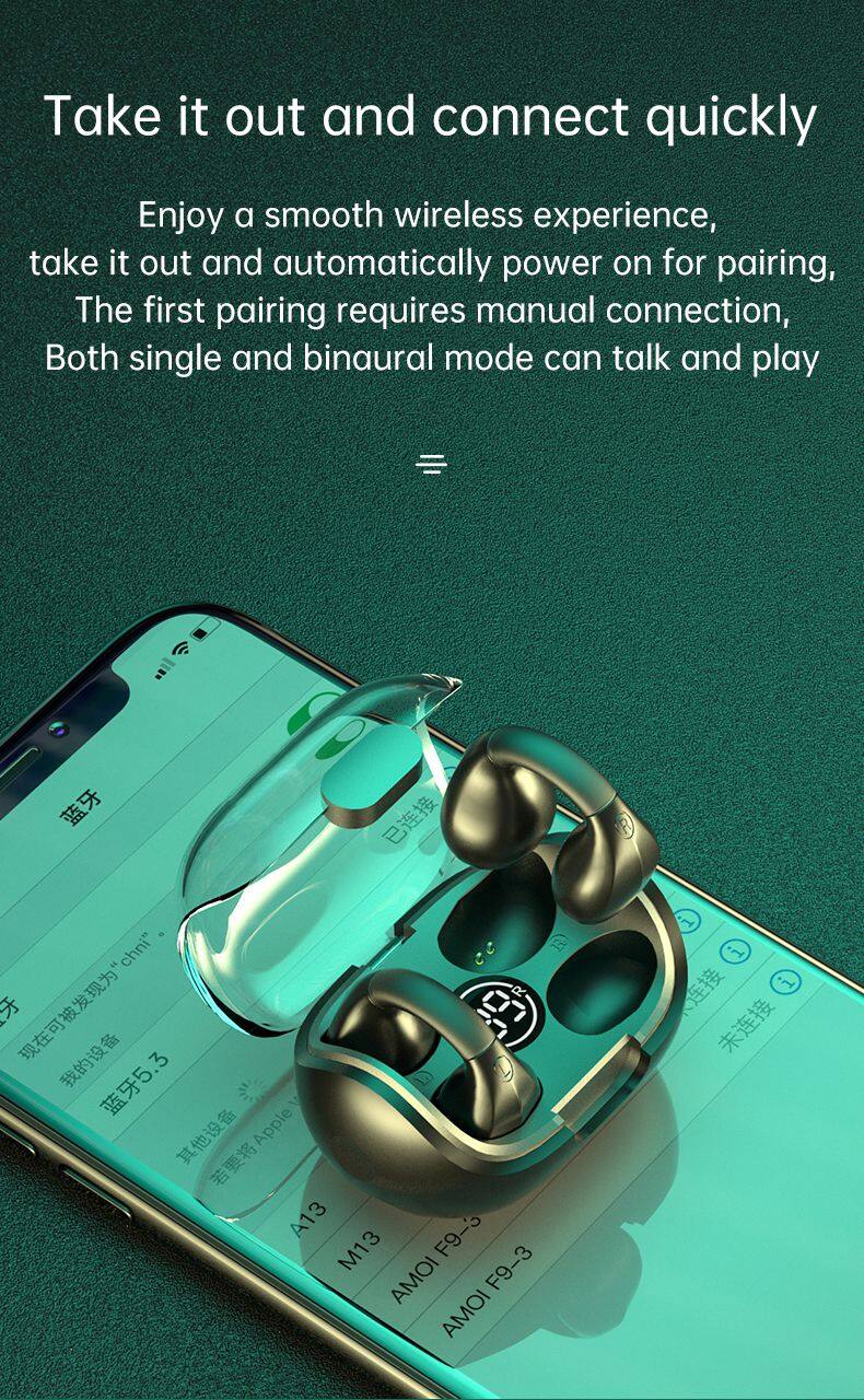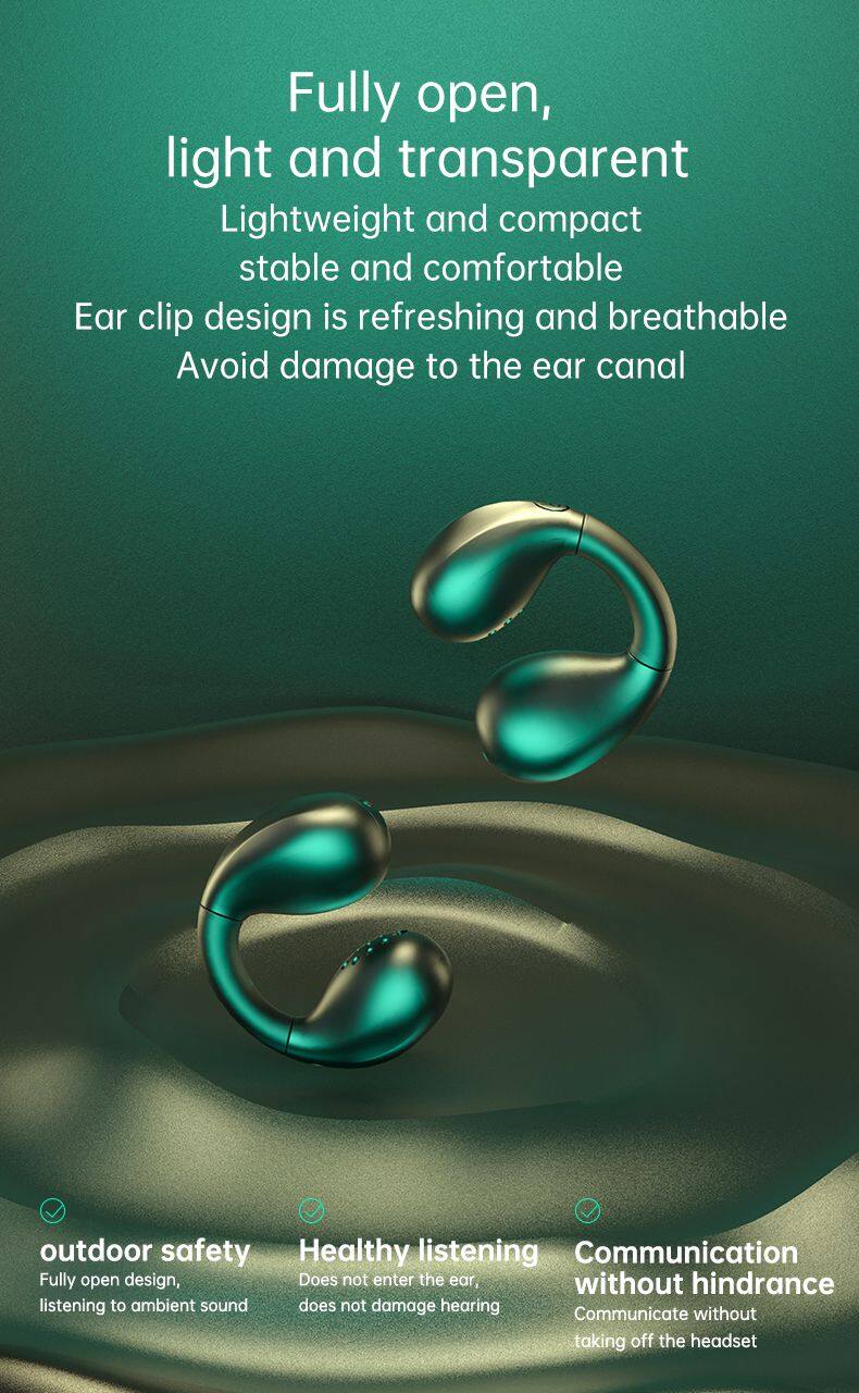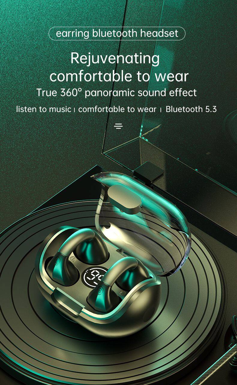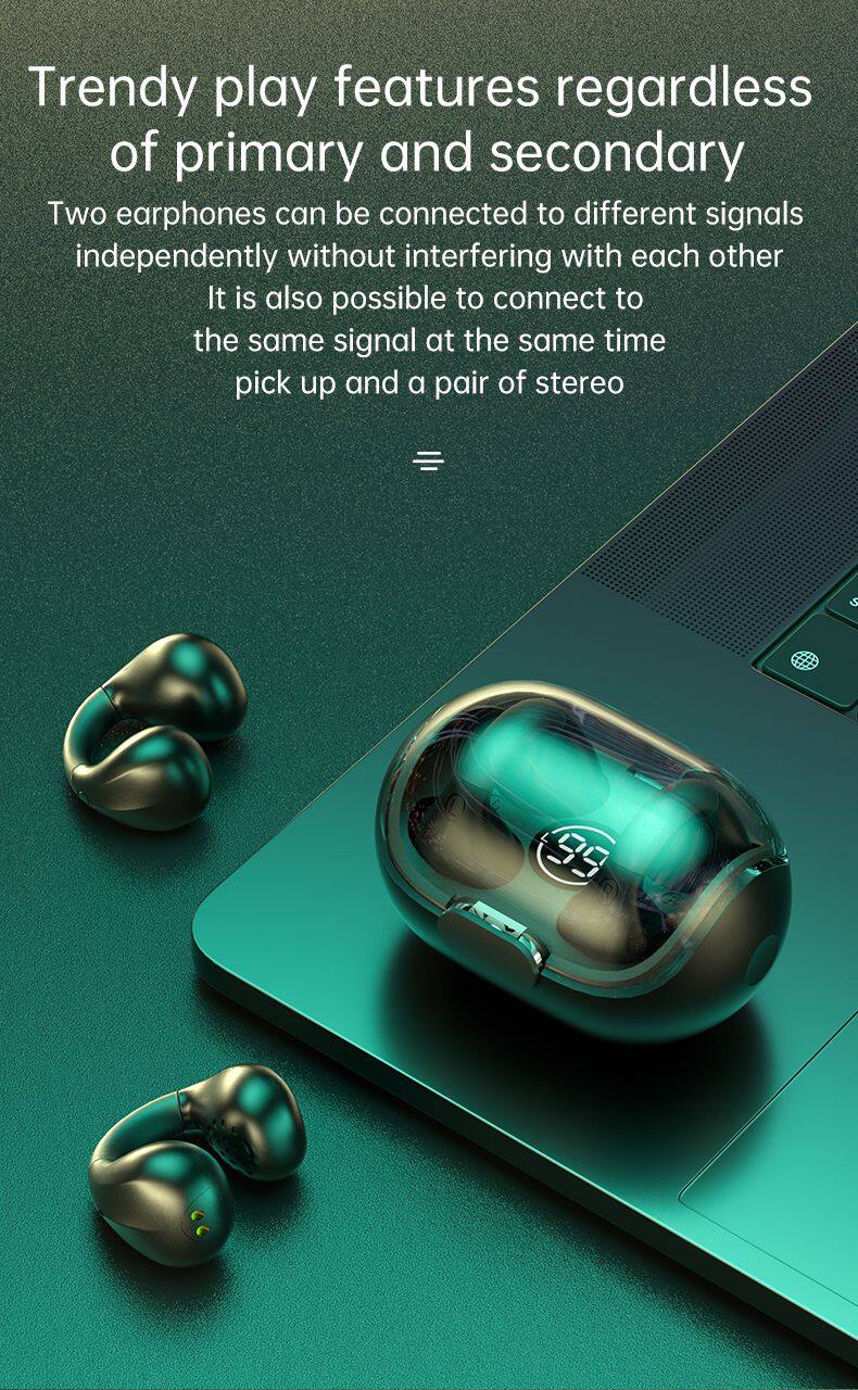 NEW Gifts Bone Conduction Earphone V5.2 Ear Clip on Ear Earring Wireless Headphones Sports Headsets Ear Hook For Ambie
