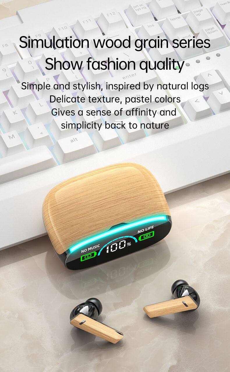 Home > Products > Other > Portable Type-C Charger Power Bank Gaming Earbuds Wood Grain Surface Earphones Mini Ture Wireless Stereo Bt5.3 Headset TWS