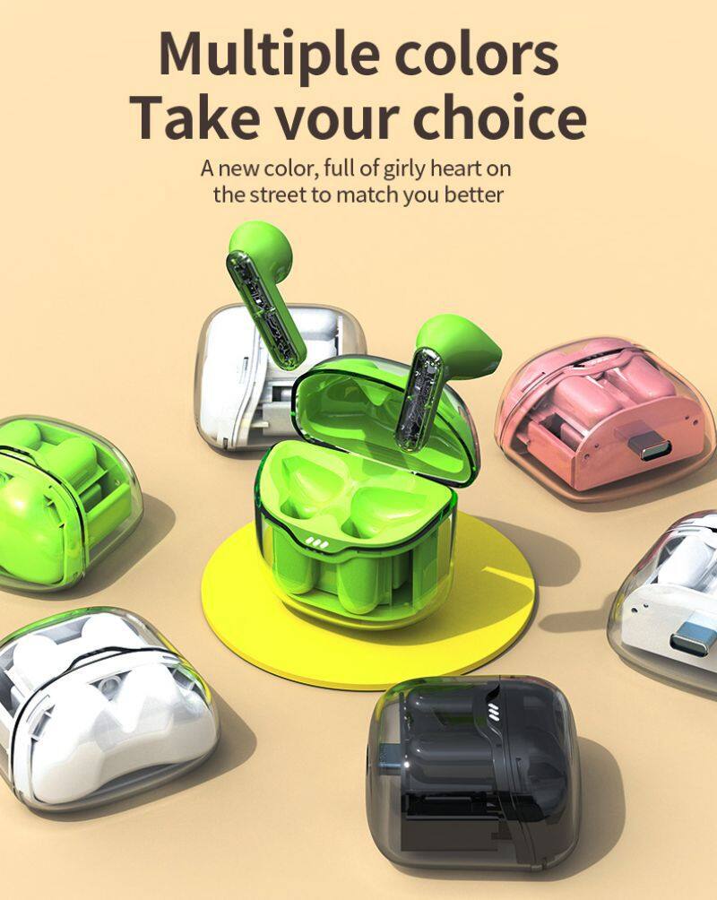 TWS Earphone Wireless Hifi Stereo Noise Reduction Mini Earbuds Transparent Charging Case HD Call Touch Control Headset