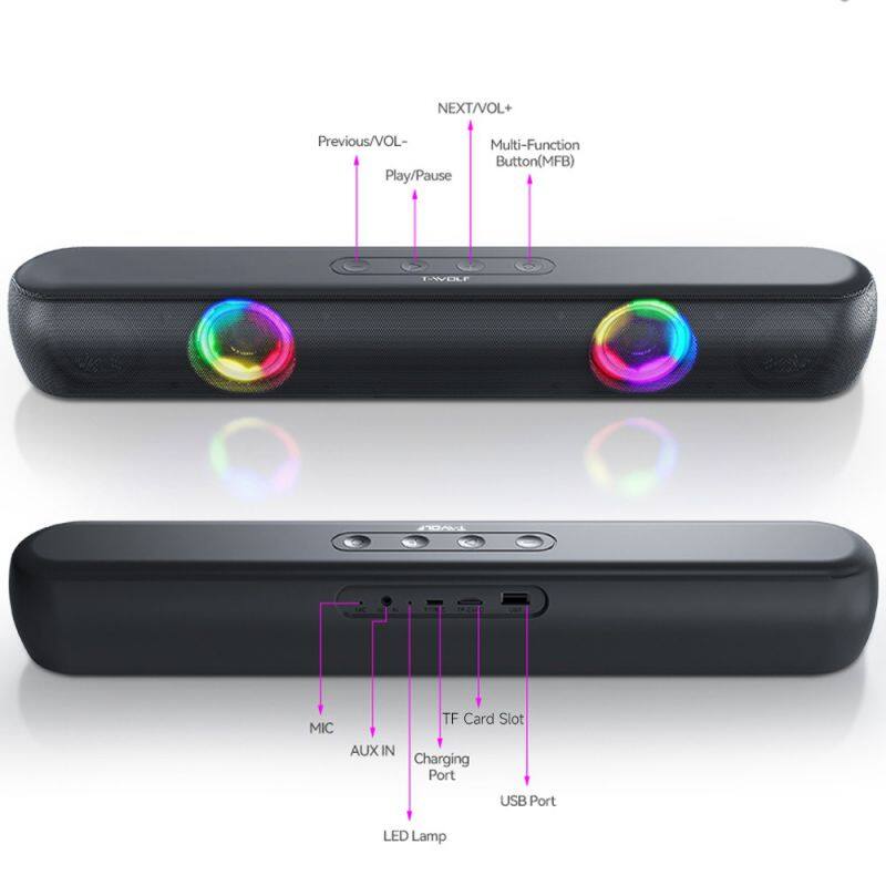 Top Seller Colorful Rgb Lights True Wireless Stereo Sound Speaker Bt5.0 Waterproof Portable Hi-fi Speaker