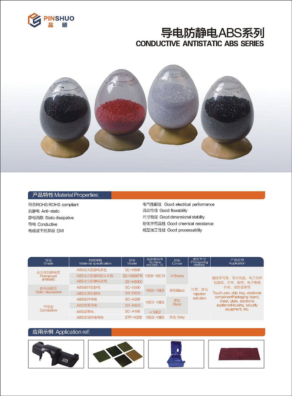 Conductive anti-static ABS is based on ABS raw materials, adding carbon fiber, carbon black, metal fiber, metal powder, antistatic masterbatch, etc., which can achieve antistatic, static dissipation, anti-dust, conductive and electromagnetic interference (EMI) and other functions. Conductive anti-static ABS has excellent comprehensive physical and mechanical properties, impact resistance, dimensional stability, easy fluidity, low water absorption, chemical resistance, good molding and machining, water resistance, inorganic salts, alkalis and acids and other products.