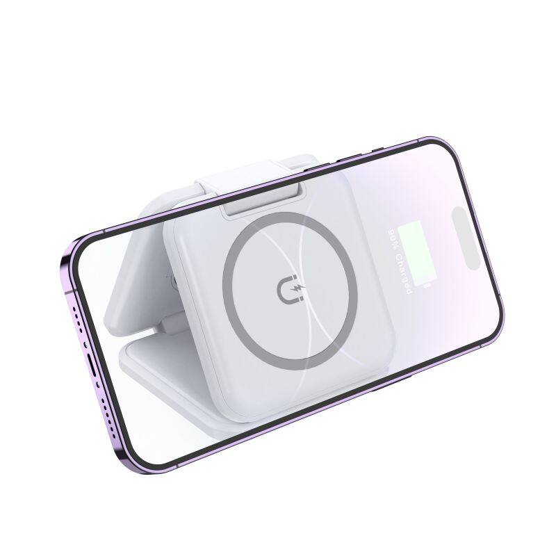 Customized Magnetic Folding 3-in-1 Wireless Charger Type-C Connected to a Convenient 15W Fast Charging Desktop Wireless Charger