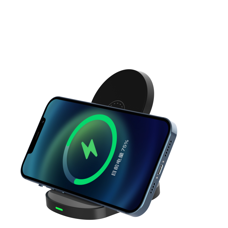 Home > Products > Other > Wholesale 15W Portable Mobile Phone Wireless Charging Stand Dual Coil Fast Charging Desktop With Stander
