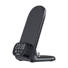 15W Multifunctional Wireless Mobile Phone Wireless Charging Station With Alarm Clock Speaker and Digital Display