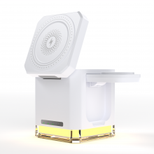 Home > Products > Other > 3-Level Adjustable Atmosphere Light 3 in 1 Vertical Wireless Charger for IPhone Watch Earphone Charging Stand