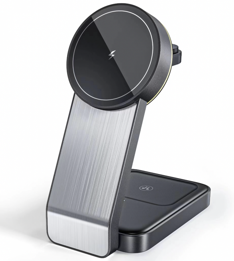 Home > Products > Other > Alloy Desktop Vertical 3 in 1 for Apple Mobile Phone Watch Earphone Wireless Charger 15W Magnetic Charging Station