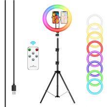 10\" Ring Light With Dimmable 10 RGB Colors & 10 Brightness Levels, Ring Light With Tripod Stand for Makeup Live Streaming Video