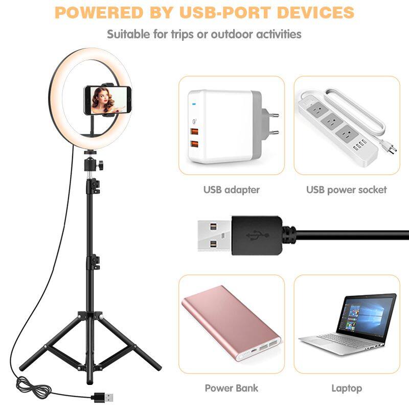 Led Selfie Light With Tripod Stand Upgraded10 Inch Dimmable Photographic Light 3 Color Modes and USB Powered for Makeup Shooting