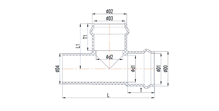 Home > Products > PIPE Fitting > DIN8063 Grey Color 315mm PN16 PVC Tee With Two Faucet And One Insert FFM