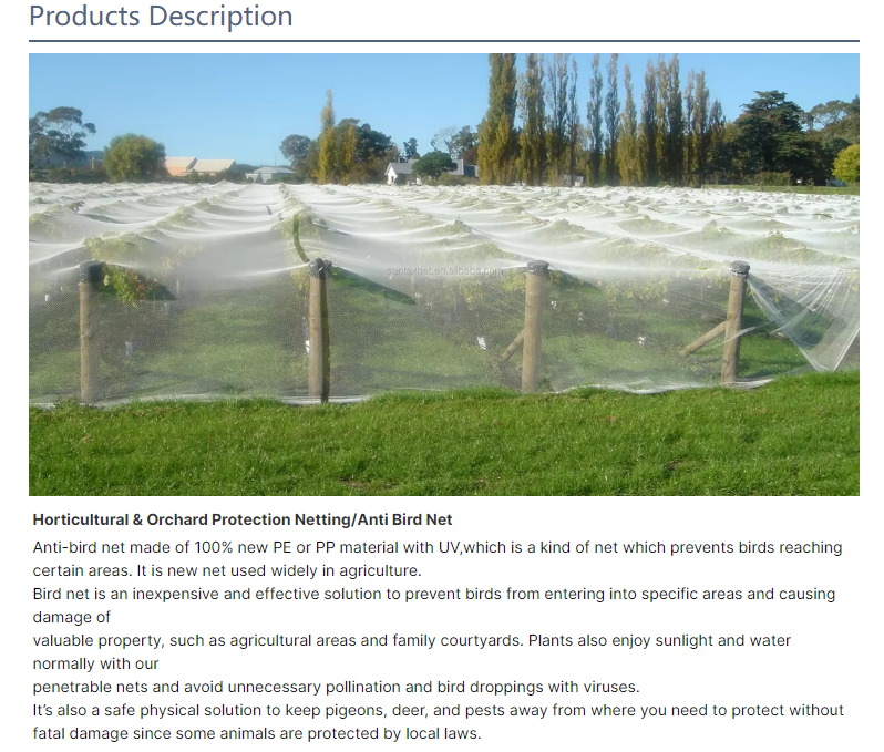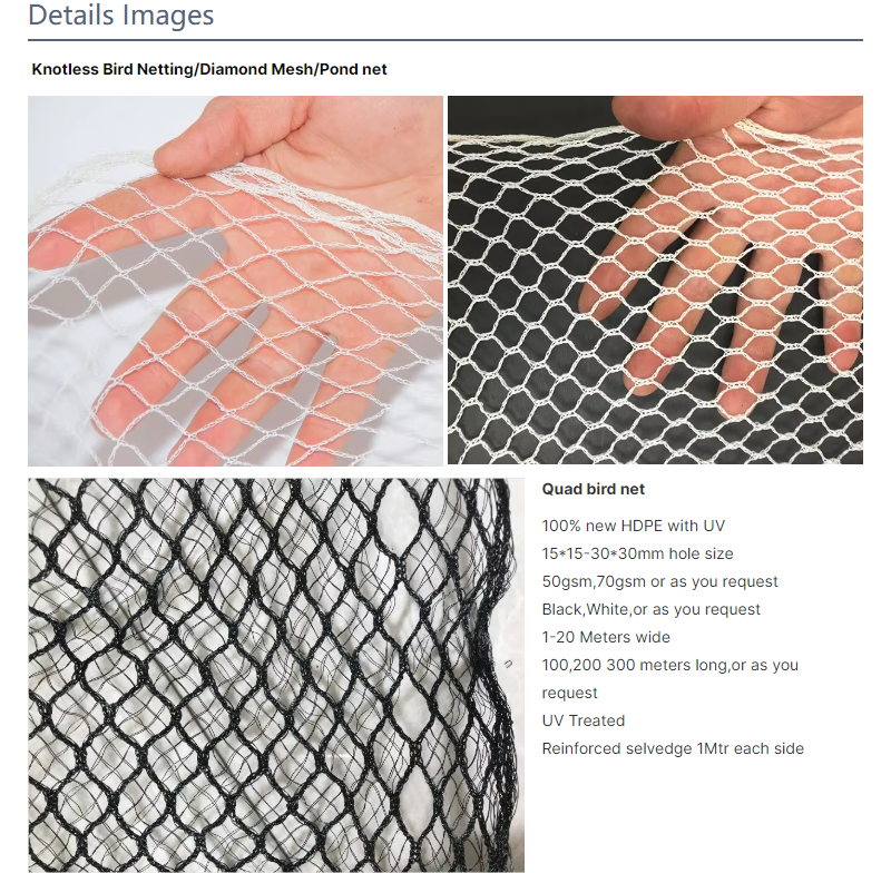 18-Strands 2CM 3CM 4CM Hole Size Heavy Anti Bird Netting,Poultry Aviary Knotted Polyethylene Protection Net