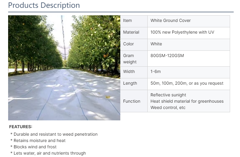 100GSM 100% New PE White Weed Control Mat, 6*100m Orchards Ground Cover Light Reflective Mulch Cloth