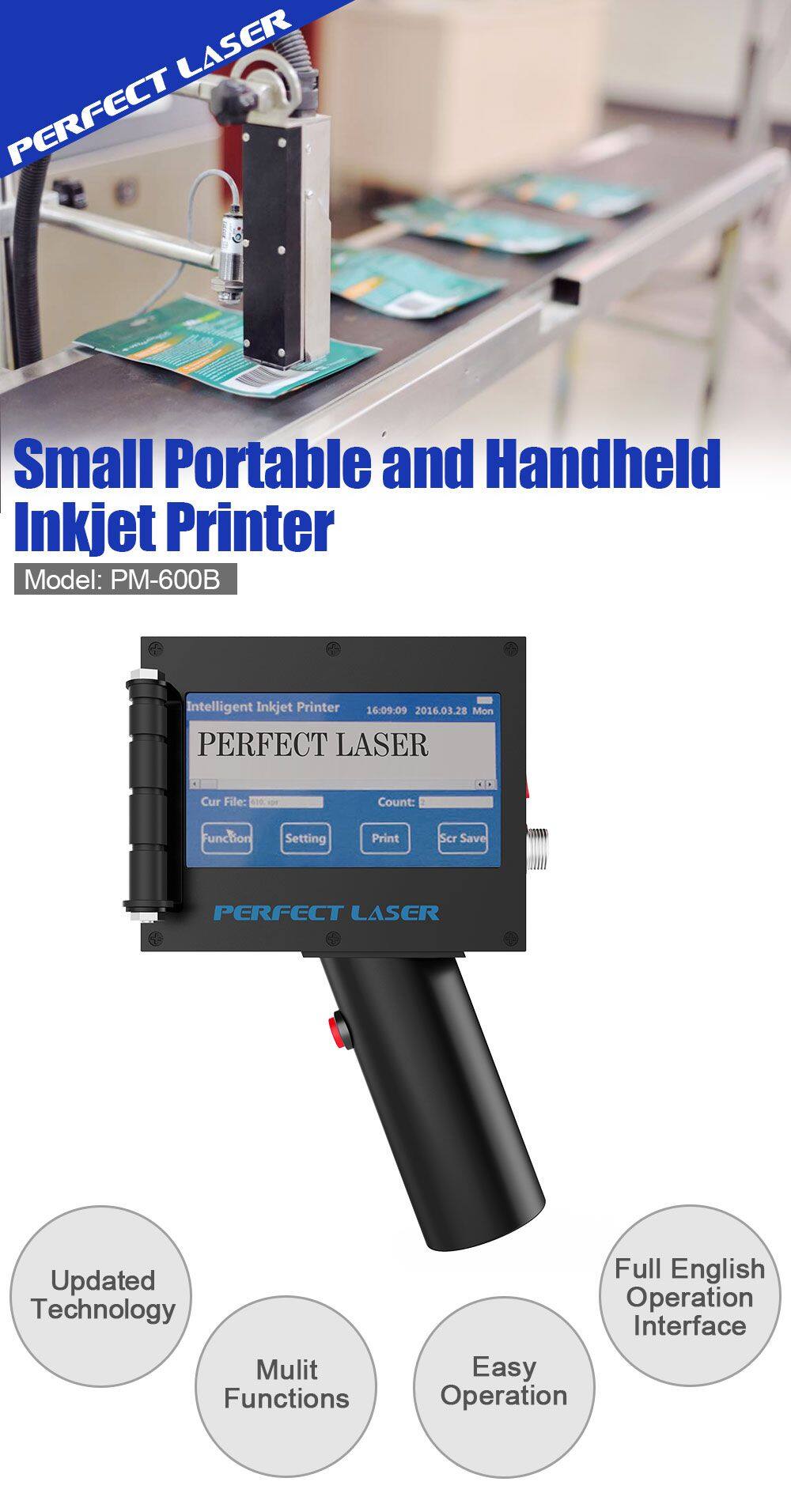 Home > Products > industrial inkjet printer > Perfect Laser Handheld Portable Expiry Date Logo Batch Coding Machine Mini Fast Drying Inkjet Printer