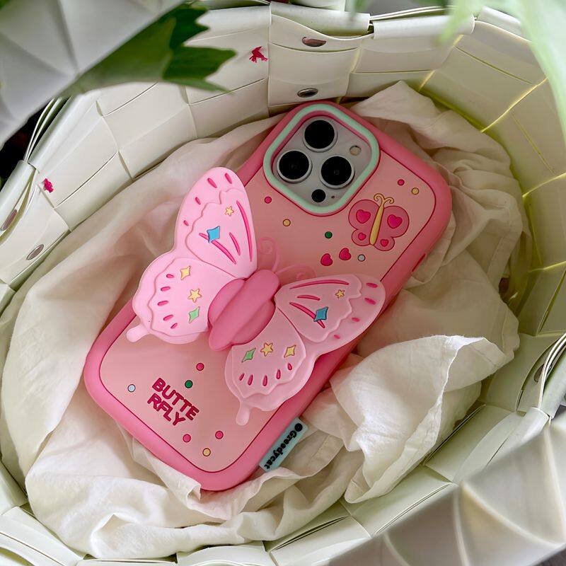 Stylish 3D Butterfly Stand Silicone Shock-proof Phone Case Iphone 12 13 14 15Pro Max