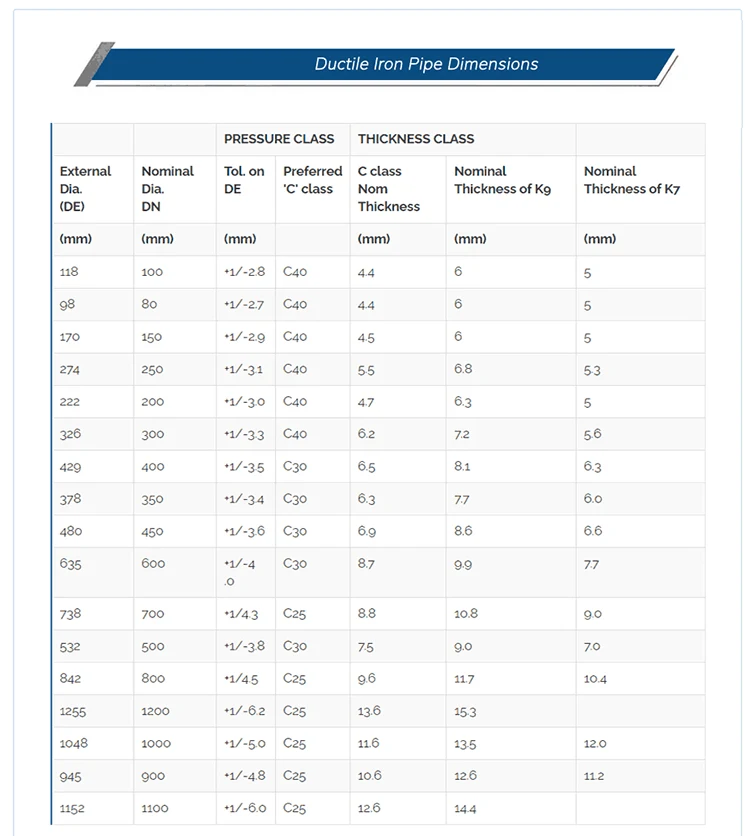 Factory Direct Sales Class K9 K10 K11 K12 Centrifugal Blowdown Ductile Iron Pipe
