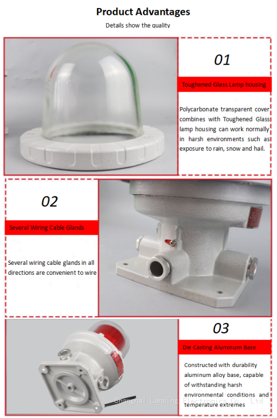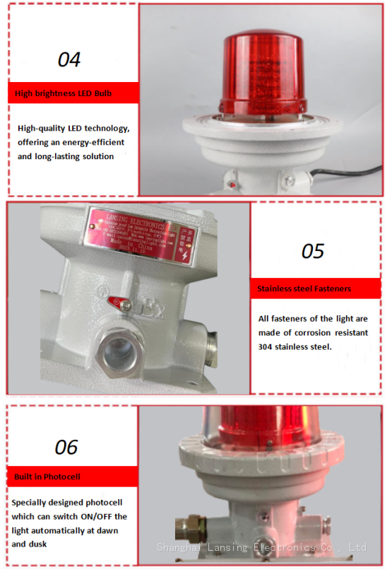 In addition to its exceptional performance, our obstruction light is also designed with ease of installation and maintenance in mind. Its compact size and lightweight construction make it easy to mount on various structures, while its low power consumption and long lifespan reduce the need for frequent maintenance and replacement.Furthermore, it is also available in various voltage options to accomodate different power requirements and installation needs.