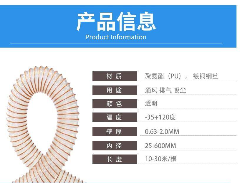 PU Polyurethane DuctCopper-plated Steel Wire HoseTransparent PU Vacuuming Sawdust Through Telescopic Air Duct