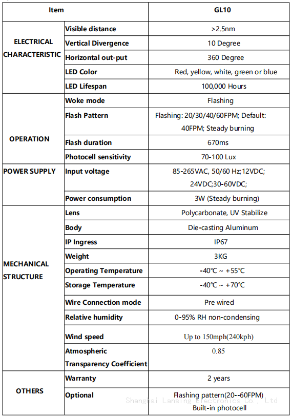 It complies with IALA-AISM's requirements. The service life can be guaranteed with more than 10 years by using high quality LED.