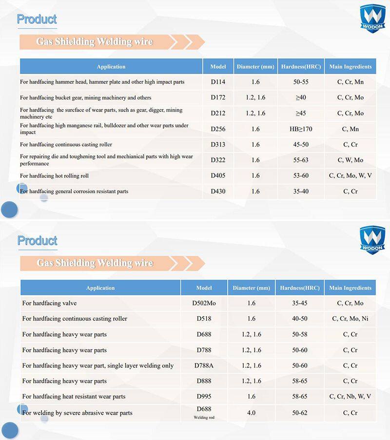 Wodon Gas Shielded Hardfacing Welding Wire Parameters