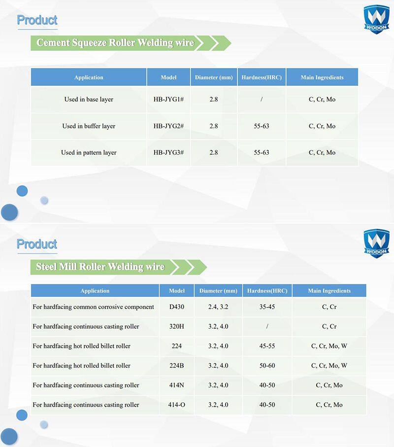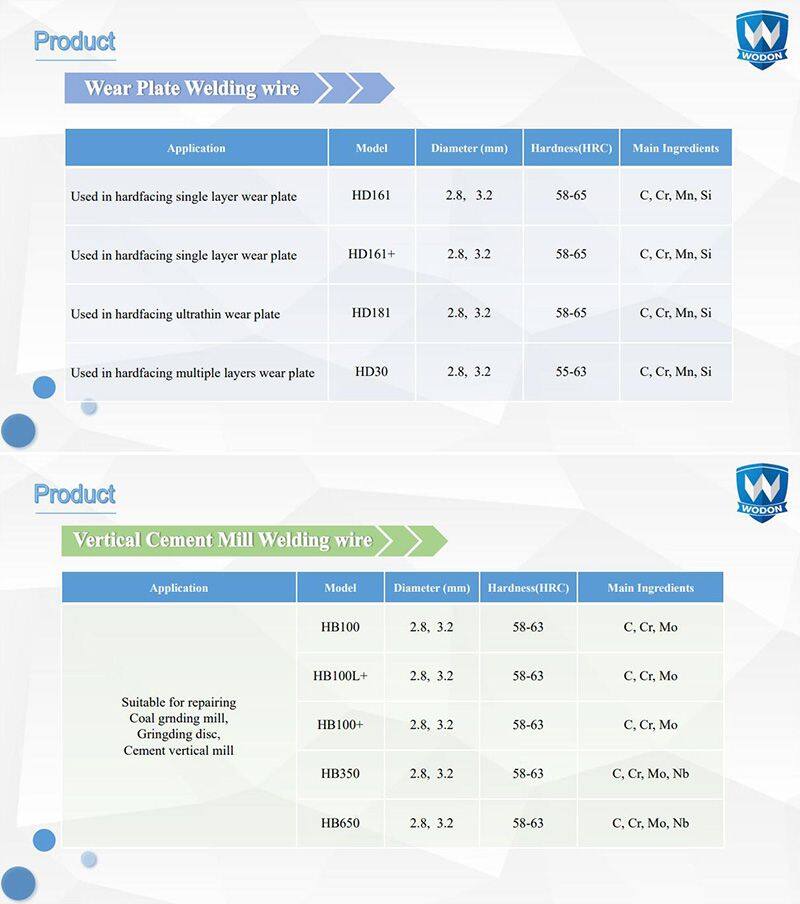 Wodon Wear-Resistant High Alloy Steel Welding Wire Parameter Table
