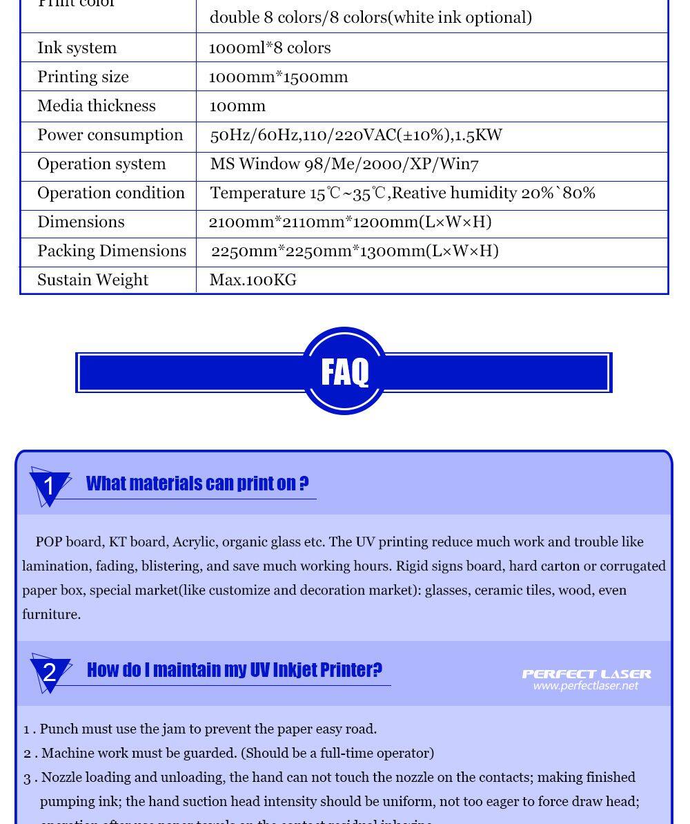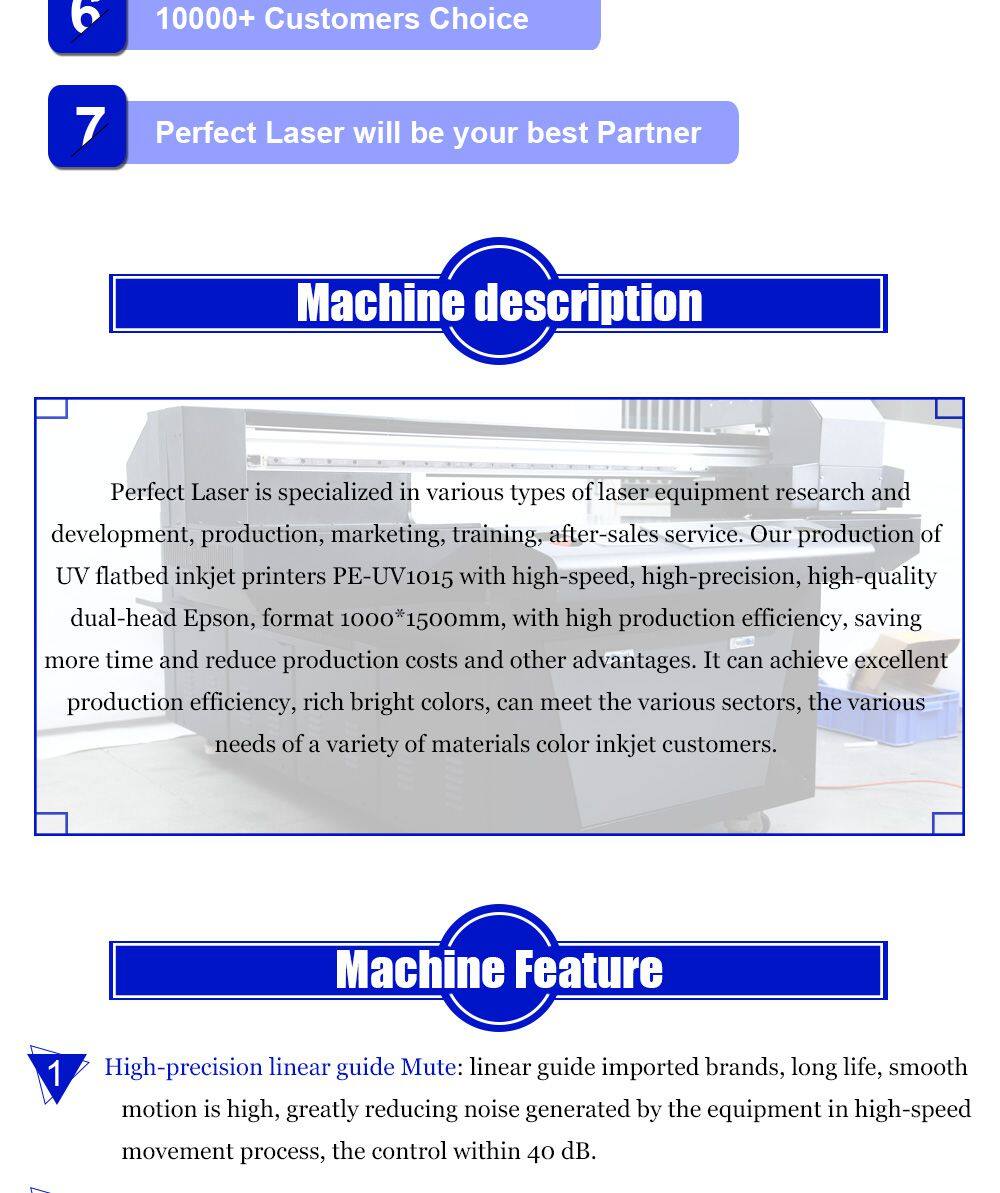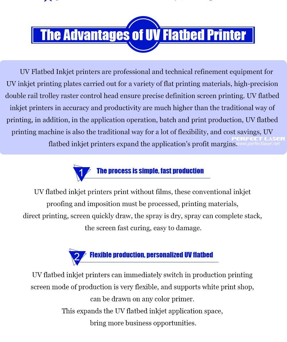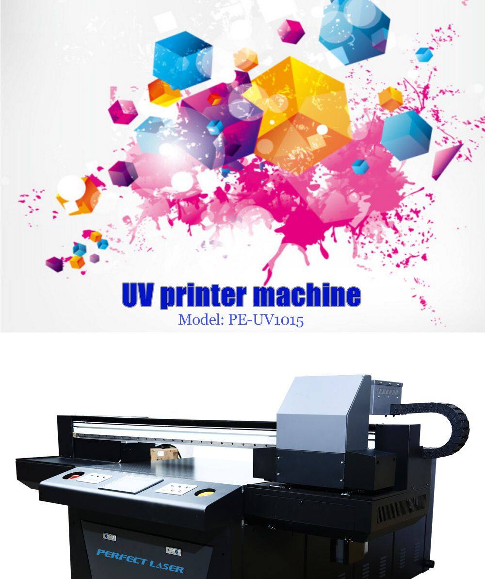 Perfect Laser PE-UV1115  UV flatbed printing machine can print on acrylic, plastic, mobile phone  case, paper, corrugated board, KT board, PVC board, ceramic tile, wood,  metal, glass, etc. (glass and some materials need pretreatment).