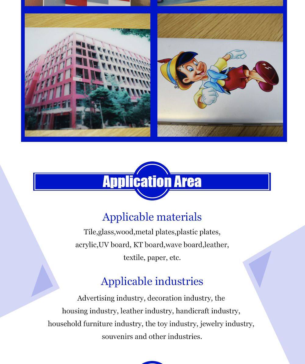 5. The digital printing machine can deal with a variety of material surface colorful printing, such as: acrylic, wood, glass, etc., It can meet a variety of personalized needs of customers.