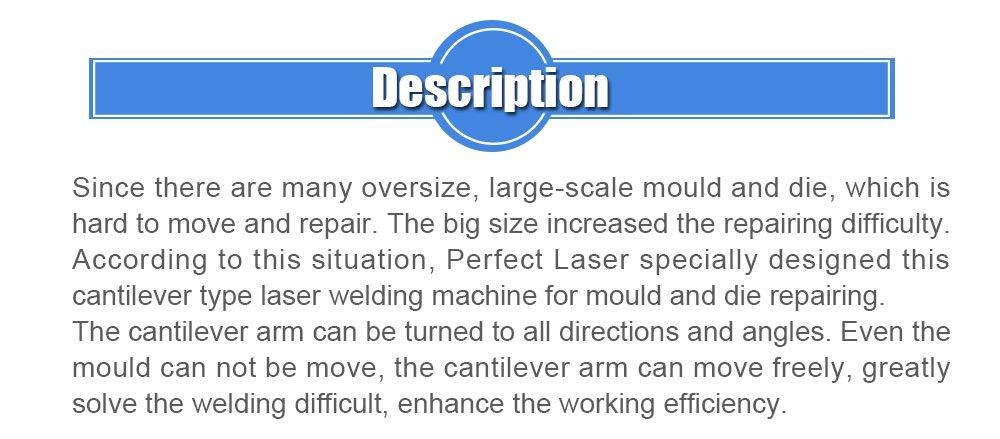 Perfect laser is specialized in welder's research and development, production, sales, training, after-sales service. Our new welder production named Suspension Arm Type Laser Welder for Mould Die Repair, this welder is designed with cantilevered laser cavity, this types of welding machine different from the original welder, in order to adapt to high strength and high hardness materials welding .At the same time in order to ensure the continuity and uniformity of welding joints, we increased mold two-dimensional table, to achieve higher difficult processing.