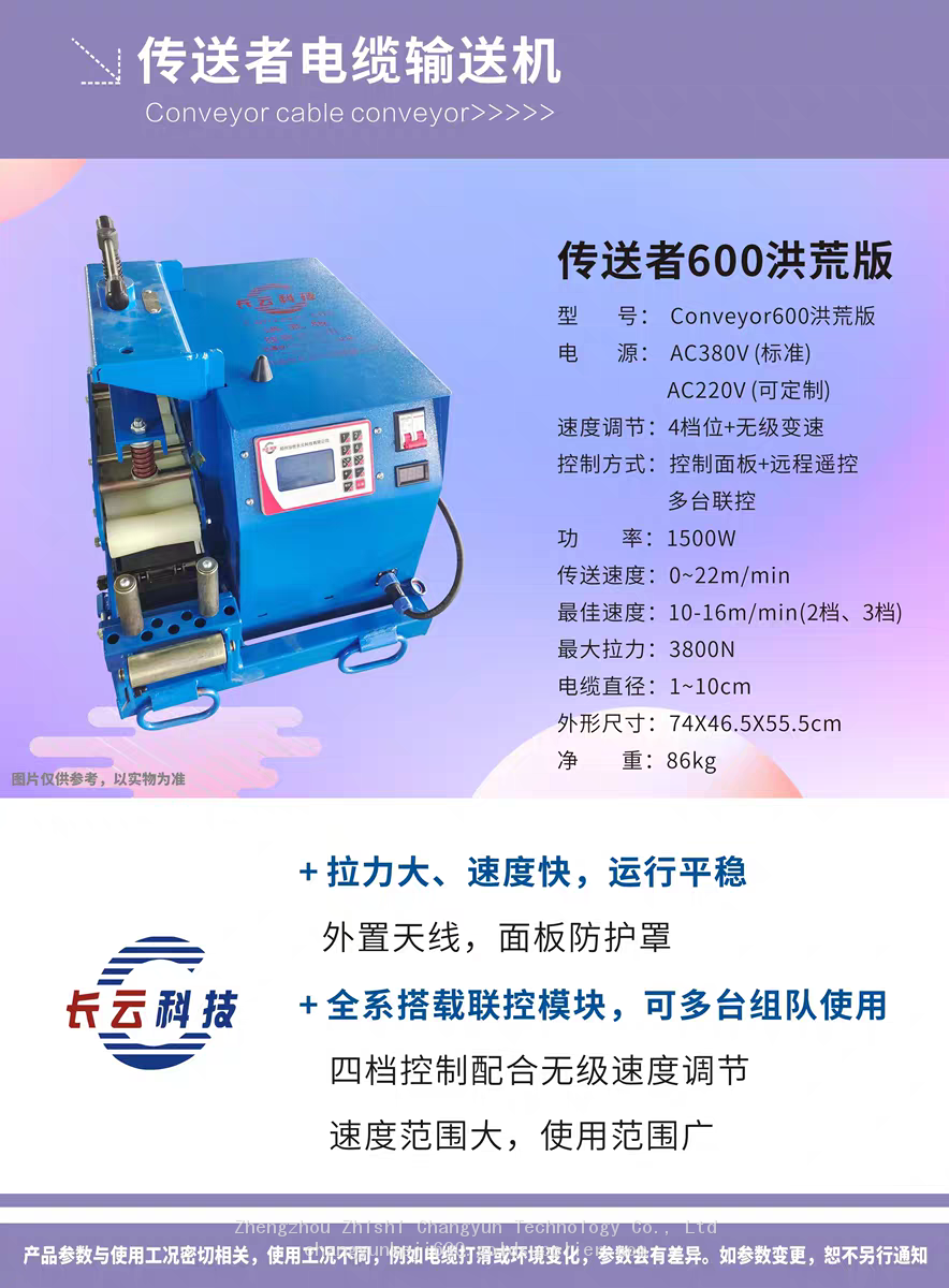Long Cloud Technology, Cable Conveyor, Cable Laying Machine, Intelligent Remote Control Speed Adjustment