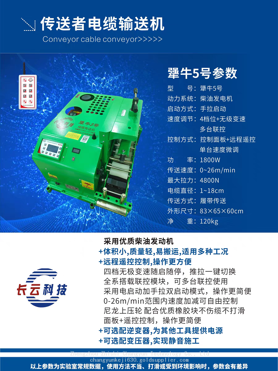Changyun Technology Enhanced Cable Conveyor Remote Control Speed Adjustment Fuel Version and Electric Version