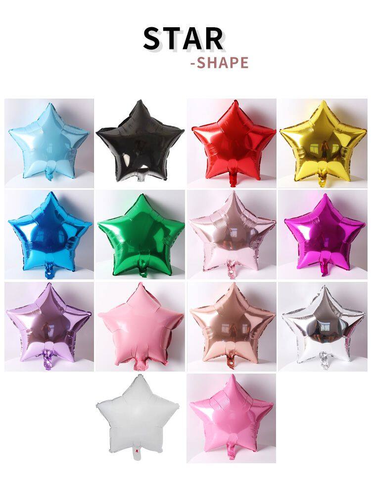 Custom 18 Inch Star Heart Aluminum Film Balloon Solid Color Heart Star Birthday Party Decoration Wholesale Foil Balloon for Kids