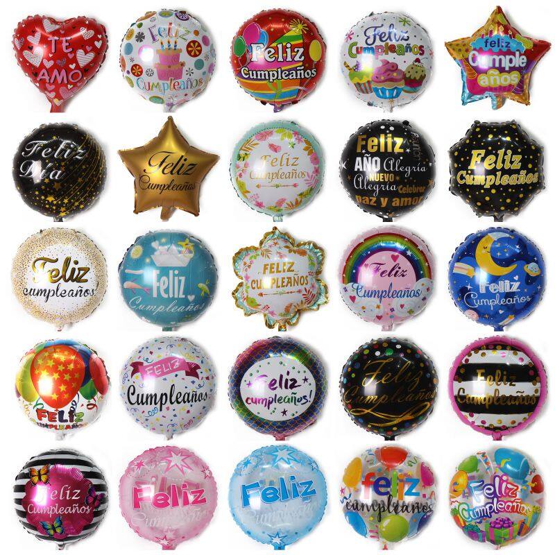 Home > Products > Other > 10inch High Quality Multi Styles Spanish Happy Birthday Feliz Cumpleanos Aluminum Foil Balloon for Birthday Party Decoration