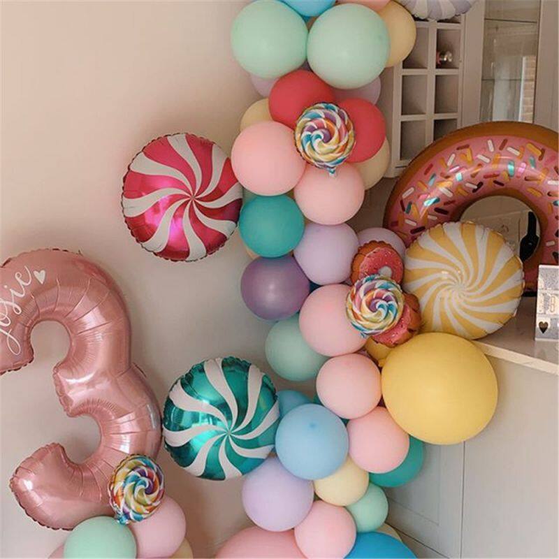 Hot New 18 Inch Round Shape Lollipop Foil Balloon Colorful Candy Aluminum Helium Kids Balloons for Birthday Party