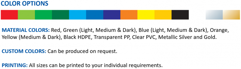 | Material: Polypropylene, HDPE, PVC |