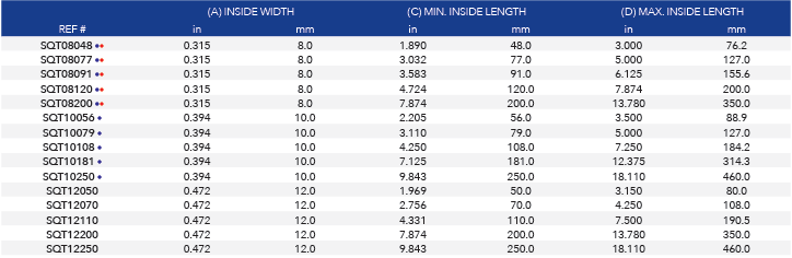 Hanger option is available for some dimensions.