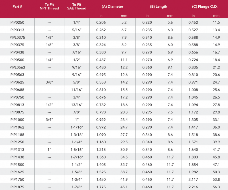 Our PIP Series Plugs are molded in Red polyethylene plastic and sized to fit SAE Threads from 1/4 thru 1-7/8 or NPT Threads from 1/8 thru 1.