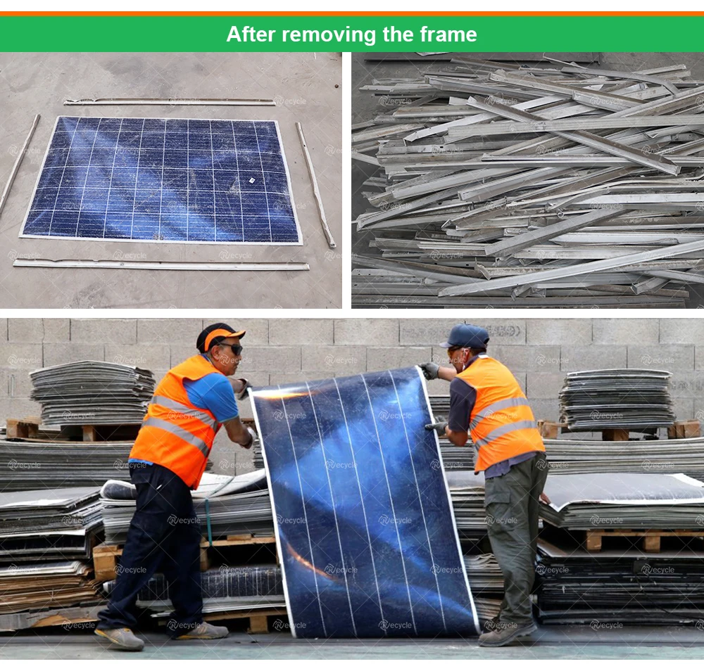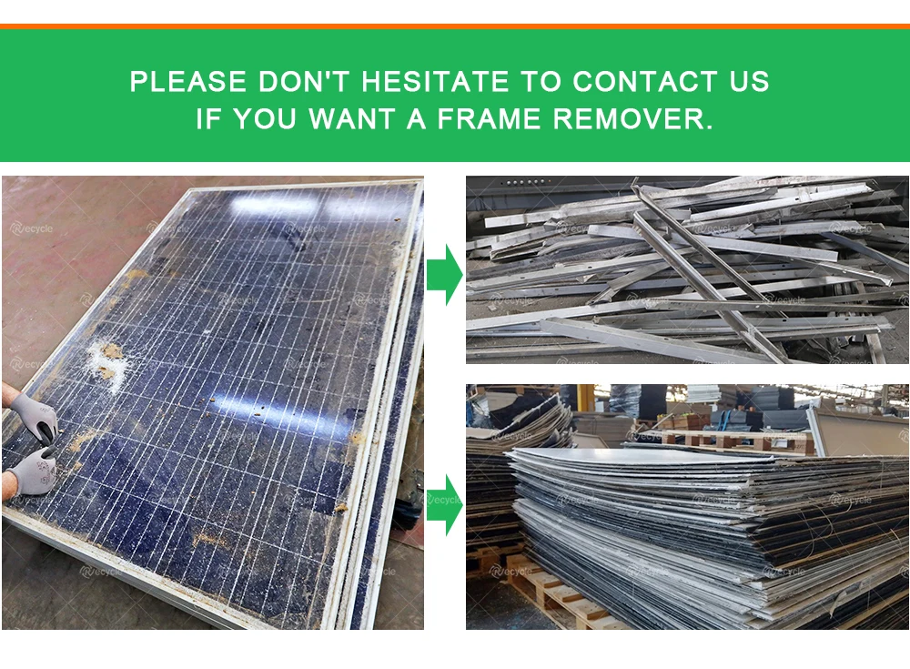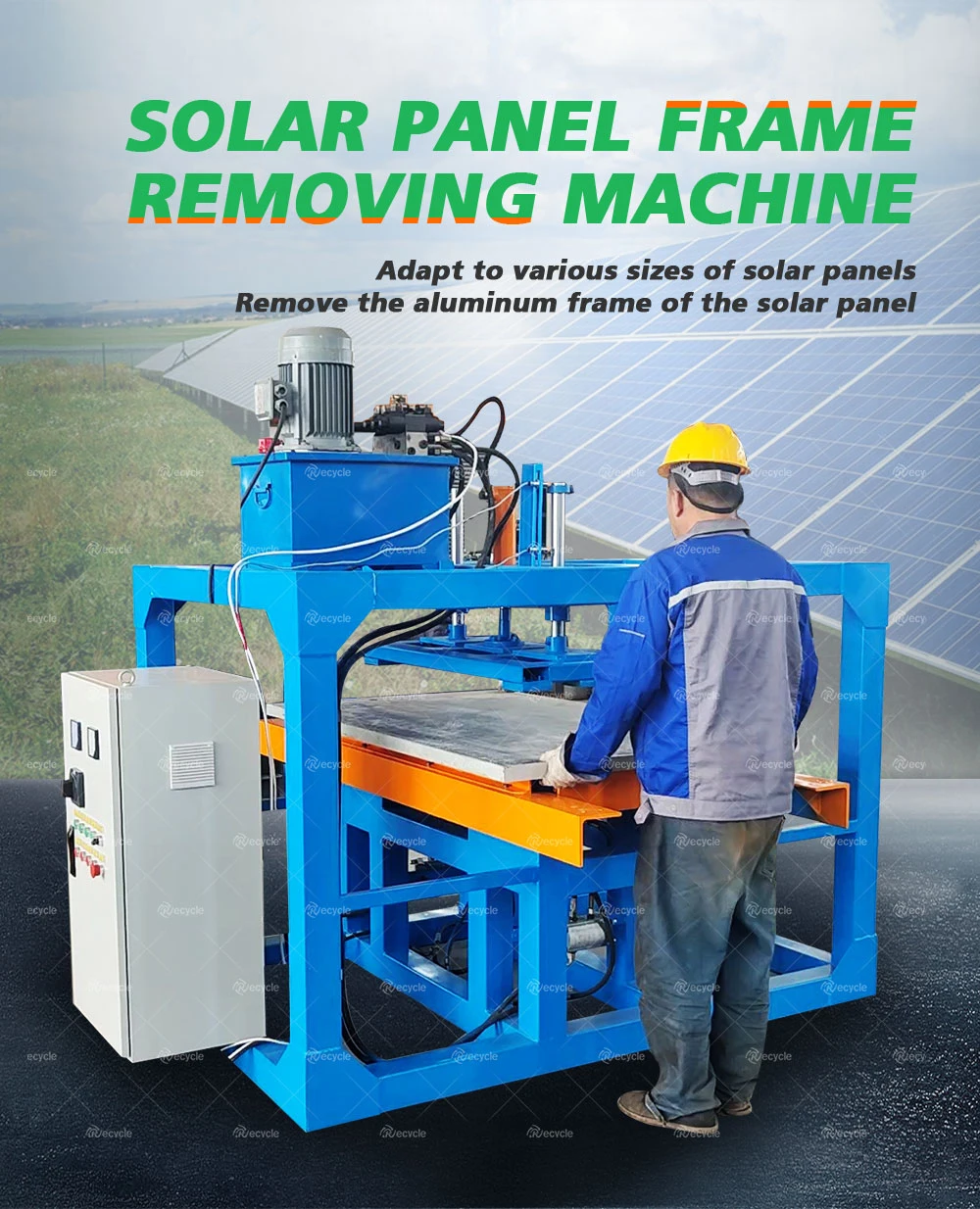 Automatic hydraulic dismantling aluminum alloy frame of solar photovoltaic panels, our machine can be customized. Solar Panel Aluminum Frame Removing is the fist step to recycle solar panels.