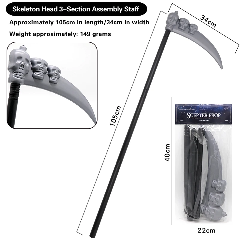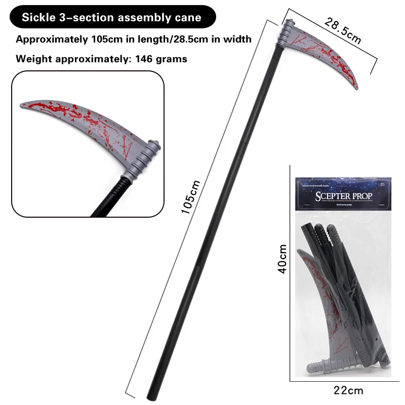 Detachable Halloween Scythe Props - Plastic Three-Section Weapons for Kids Adults