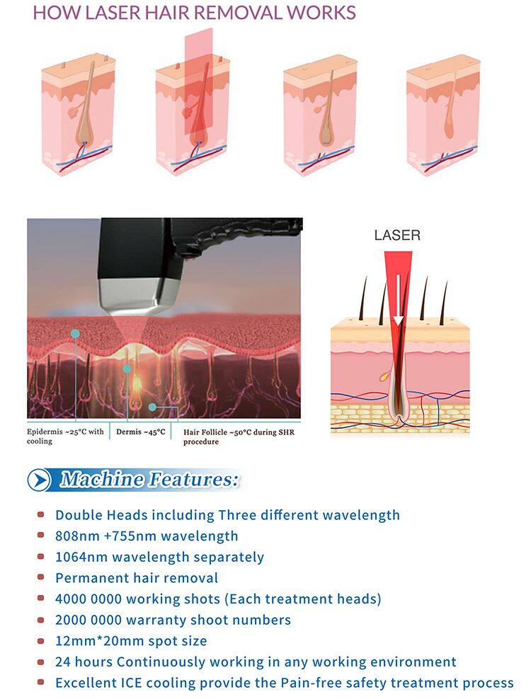 High-Efficiency Laser Hair Removal Equipment Featuring Cooling System for Pain-Free Sessions