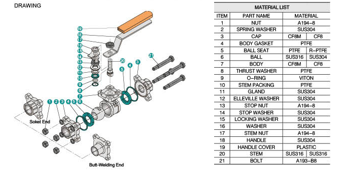 Low Torque ANSI Thread Ball Valve With Teflon Seals for Easy Manual Operation